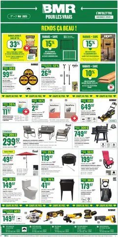 BMR MontréalBMR SaguenayBMR Trois-RivièresBMR BlainvilleBMR ChâteauguayBMR Salaberry-de-ValleyfieldBMR ShawiniganBMR MirabelBMR VictoriavilleBMR Sept-ÎlesBMR Val-d'OrBMR Rouyn-NorandaCes produits se trouvent actuellement dans les circulaires
